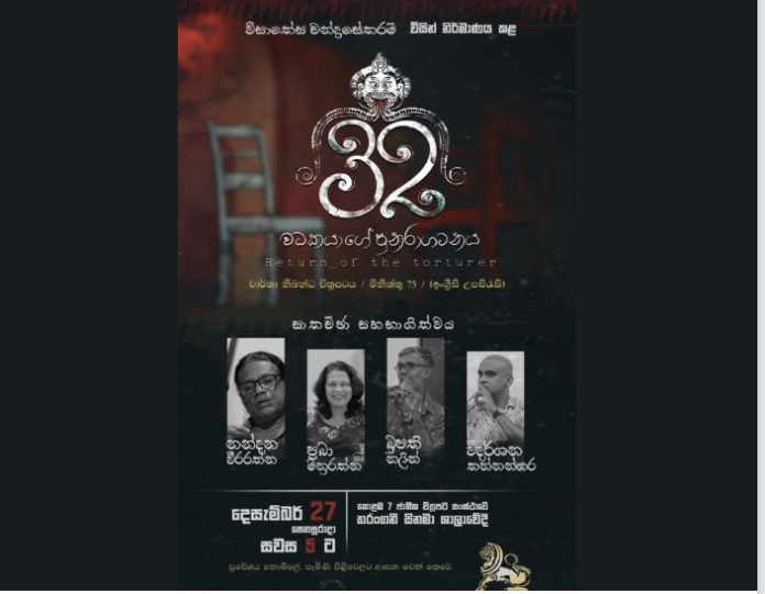 නීතිඥ සහ ප්රවීණ සිනමාකරු ආචාර්ය විසාකේස චන්ද්රසේකරම් (Visakesa Chandrasekaram) ගේ නවතම වාර්තා චිත්රපටය “32 – Return of the Torturer” චිත්රපටය ප්රදර්ශනය සහ ඒ පිළිබඳ සිනමා කතිකාව ලබන (27) සවස 5.00ට තරංග සිනමාශාලාවේදී පැවැත්වේ.