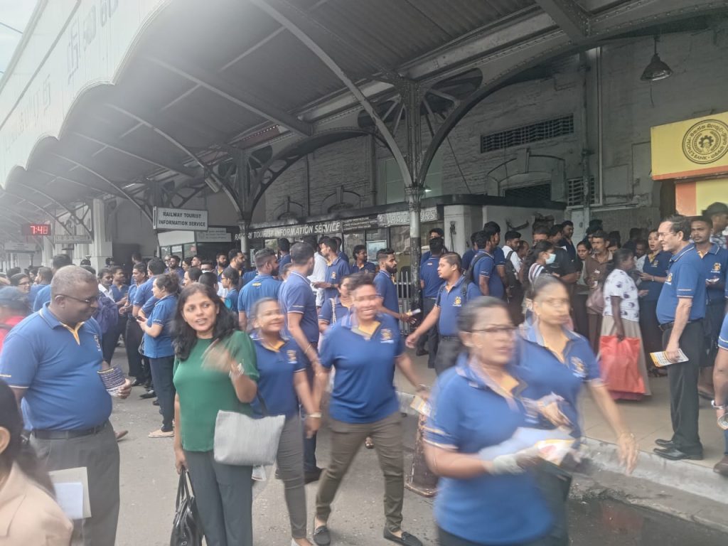 ජාතික ඉතිරිකිරීමේ බැංකුවේ 53වැනි සංවත්සරයට සමගාමීව බැංකුවේ ජාතික සේවක සංගනය සංවිධාන කළ ඉතුරුම් ප්‍රවර්ධන වැඩසටහනක් කොළඹ කොටුව දුම්රිය ස්ථානය ඉදිරිපිටදී අද (17)පෙරවරුවේ දී පැවැත්විණි.එහිදී අත්පත්‍රිකා බෙදමින් එම සාමාජිකයින් ජනතාව දැනුවත් කළ අයුරු මෙහි දැක්වෙන අතර ‍එය ඉකුත් (16) වැනි දිනට පැවැති බැංකු සංවත්සරය වෙනුවෙන් සංවිධානය කර තිබුණි.