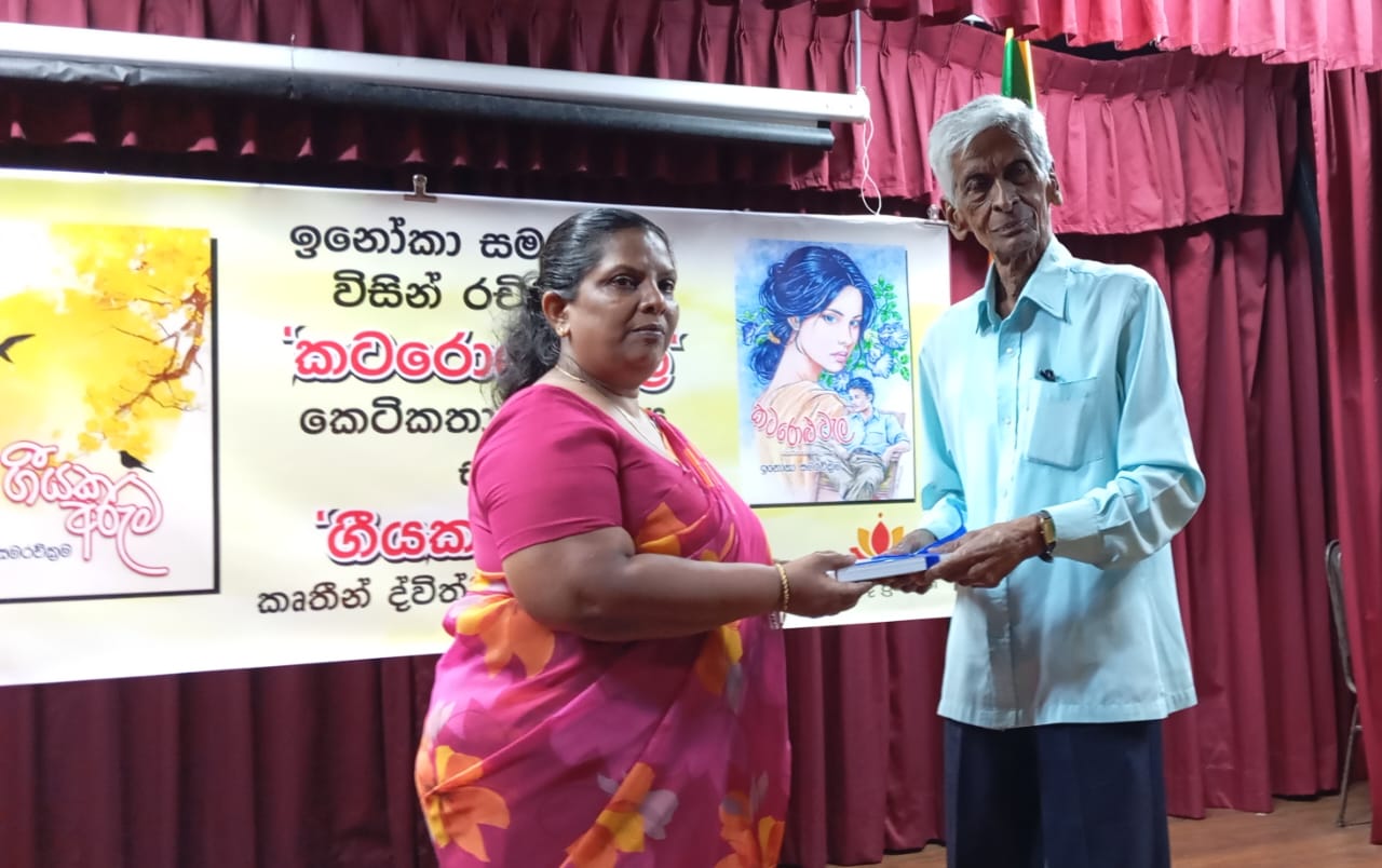 එක්සත් ප්රවෘත්ති පත්ර සමාගමේ මාධ්යවේදීනියක් ලෙස සේවය කරන ඉනෝකා සමරවික්රම ලියු ‘කටරොළු වැල‘, හා ‘ගීයක අරුම‘ ග්රන්ථ ද්විත්වය එළි දැක්වීම (24) ජාතික පුස්තකාල හා ප්රලේඛනසේවා මණ්ඬල ශ්රවාණාගාරයේදී සිදුකෙරිණි.