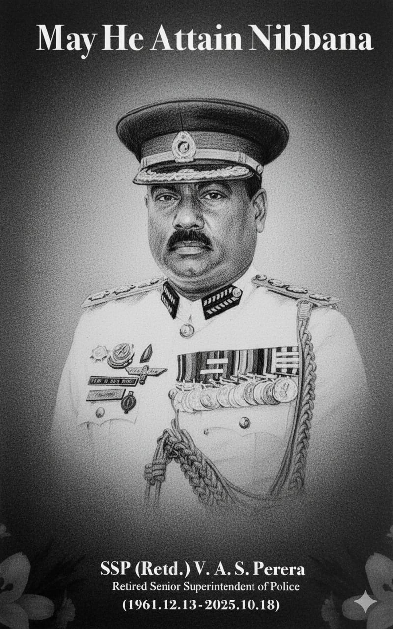 Today, we say goodbye to a noble son of our motherland, Retired Senior Superintendent of Police Mr. Vass Perera, a man who devoted his entire life to protecting the sovereignty, peace, and integrity of our beloved Sri Lanka.