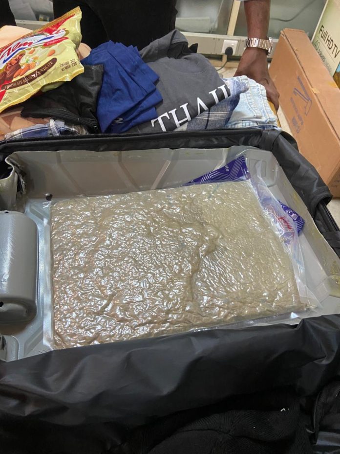 The suspect arrived at Bandaranaike International Airport (BIA) around 11.00 a.m. today (28th October 2025) on SriLankan Airlines flight UL 403. The narcotics were concealed in a false bottoms of the suspect’s luggage and back pack, evading ordinary detection methods.